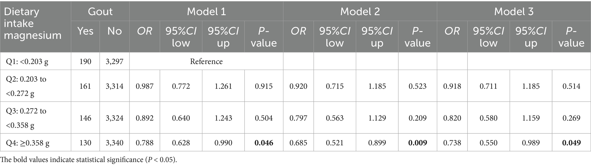 3.3.2 Dietary magnesium intake and logistic regression analysis