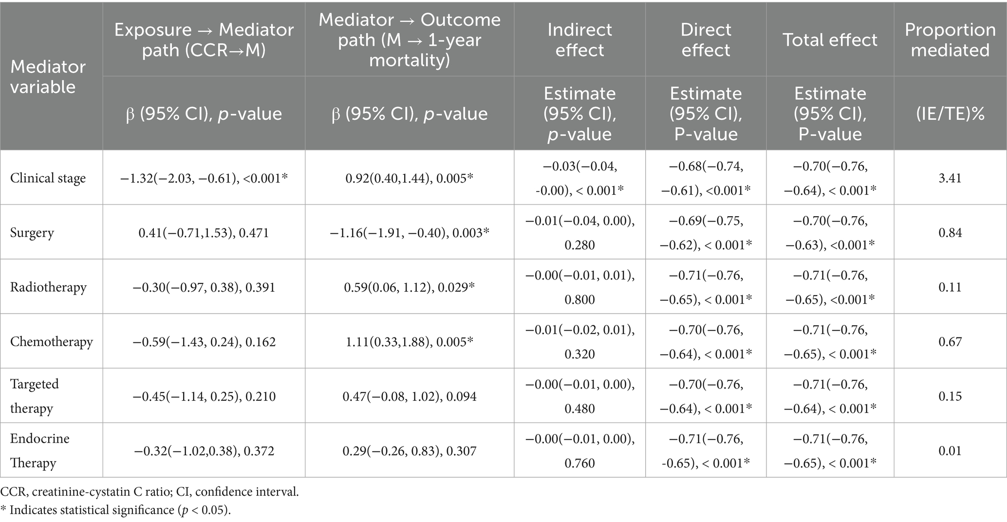 Table 3. Mediating effects of clinical stage and treatment-related variables on the association between CCR and 1-year mortality in breast cancer.