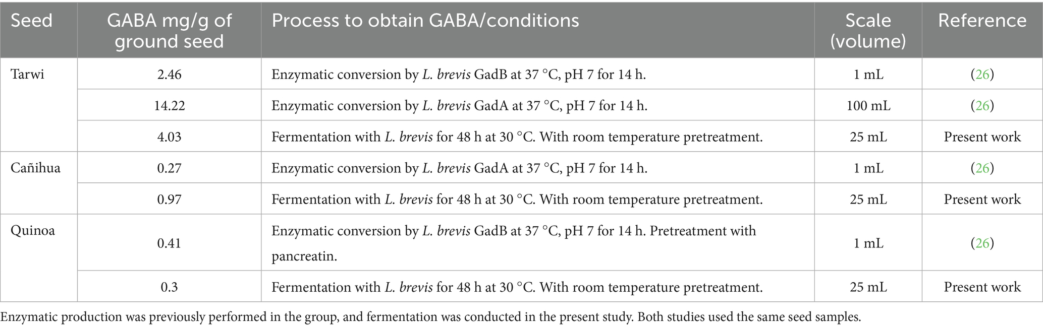 Table 3. Comparison of enzymatic and fermentation production of GABA in Andean seeds with L. brevis.