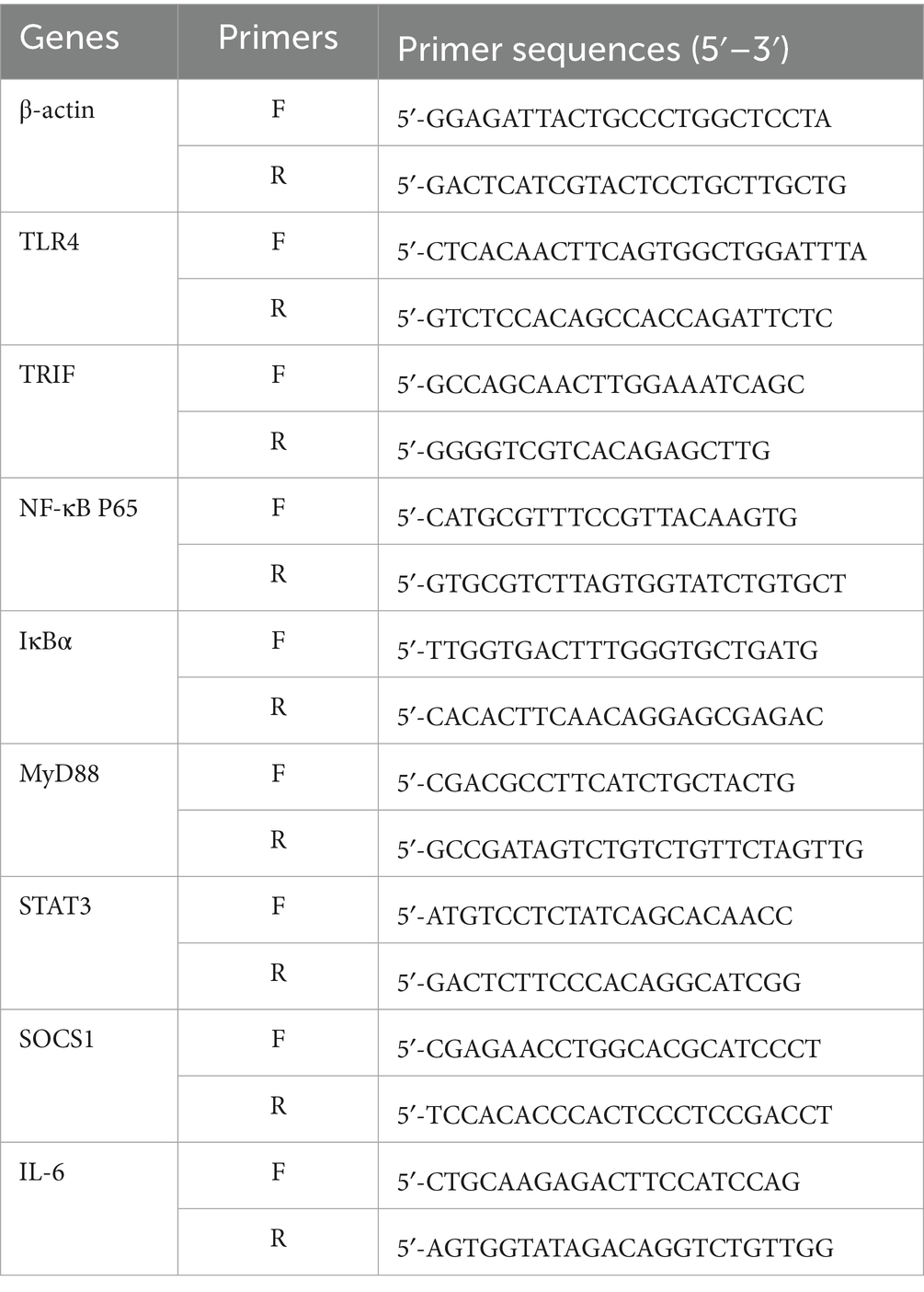 Total RNA was extracted from colon tissues utilizing the RNA Easy Fast Animal Tissue Extraction Kit, and its concentration and purity were evaluated. Using β-actin as the internal reference, cDNA was subjected to qPCR amplification. The relative expression levels of target genes in each sample were calculated using the 2−ΔΔCT method. The primer sequences are presented in Table 1.