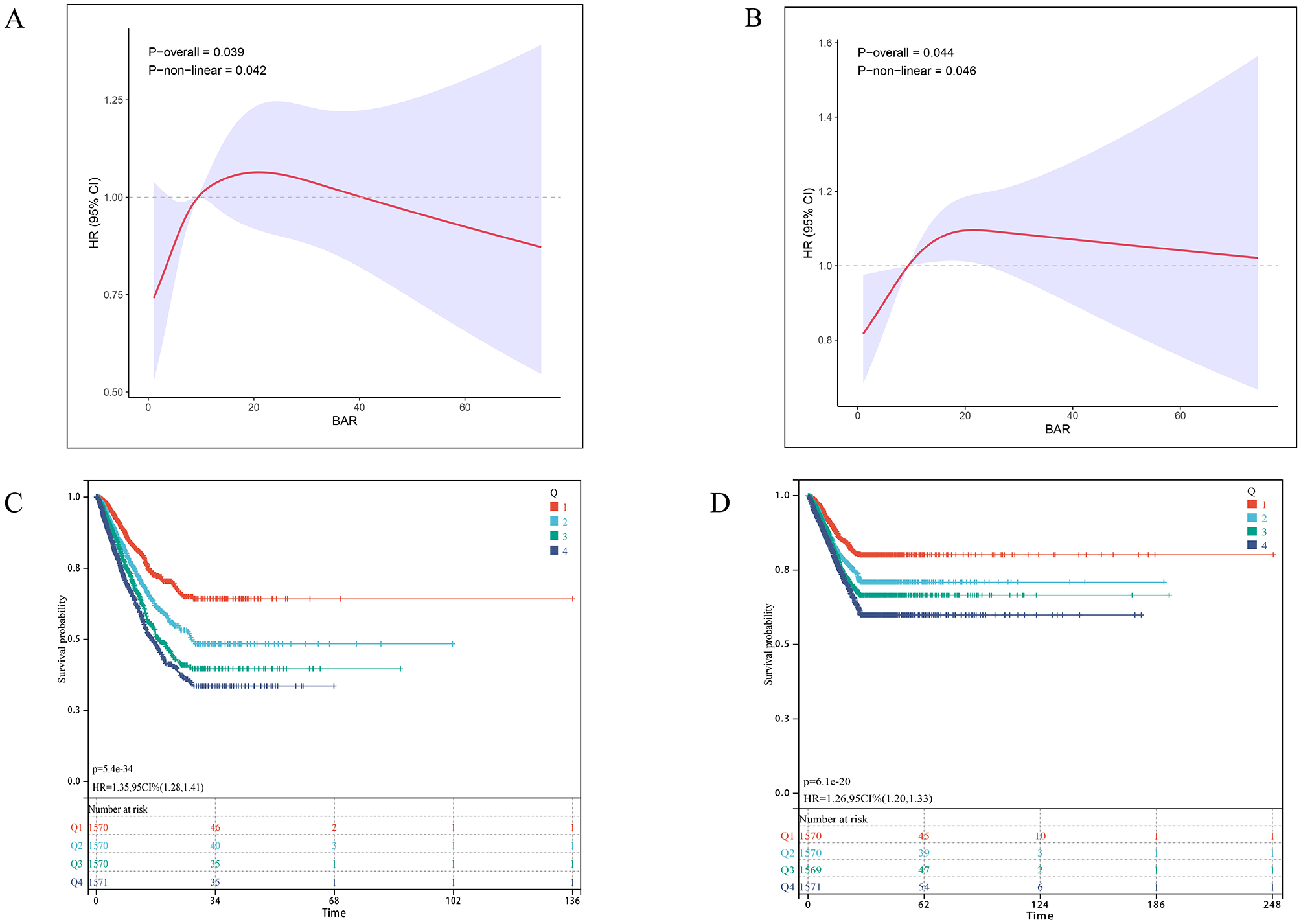 Continuous variables are presented as medians with interquartile ranges (IQR) or mean ± standard deviation (SD). Group comparisons were performed using Student's t-test or ANOVA for normally distributed data and Mann-Whitney U or Kruskal-Wallis tests for non-normally distributed data. Categorical variables are expressed as counts (percentages) and compared using Pearson's χ2 test or Fisher's exact test, as appropriate. Univariate regression identified variables associated with 28-day mortality. Multivariable Cox proportional hazards models then assessed the independent prognostic value of GNRI, reporting hazard ratios (HRs) with 95% confidence intervals (Cis). Three adjustment models were constructed: Model 1 (unadjusted); Model 2 (adjusted for demographics and comorbidities); Model 3 additionally adjusted for vital signs, interventions, and significant laboratory parameters (Supplementary Tables S1–S3). We evaluated trend associations and calculated variance inflation factors (VIF) to assess multicollinearity. Restricted cubic splines with four knots (at the 5th, 35th, 65th, and 95th percentiles) examined GNRI-outcome relationships after full covariate adjustment. All analyses were conducted using R software (version 4.2.2). A two-sided p-value < 0.05 defined statistical significance.