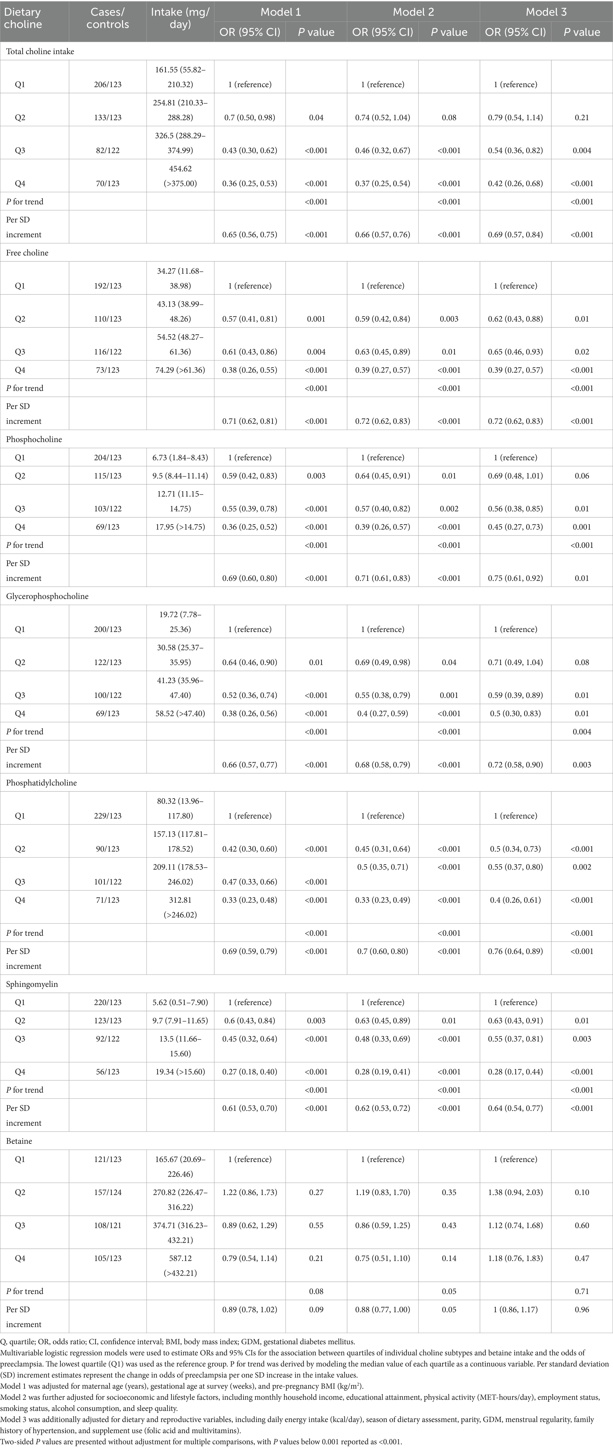 3.2 Dietary choline, betaine intake, and odds of preeclampsia
