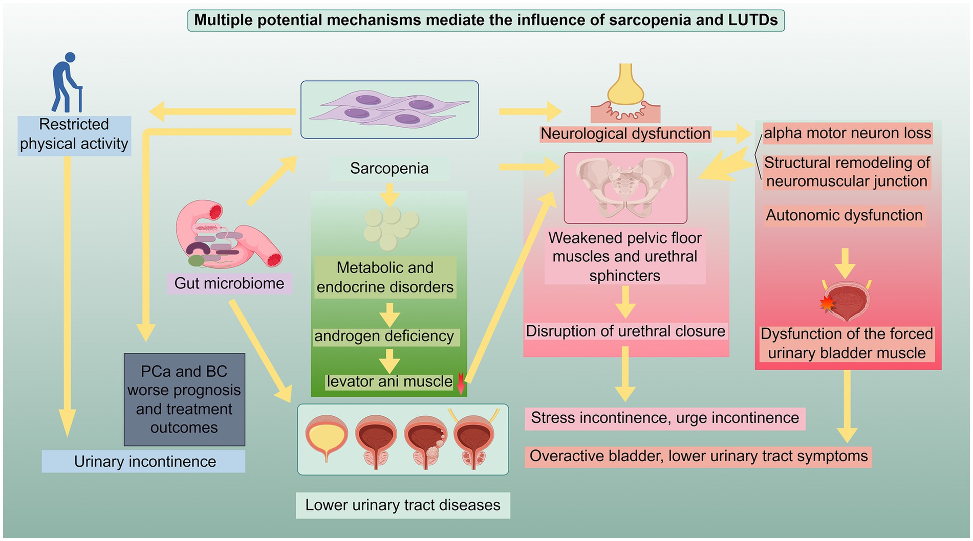 3 Multiple potential mechanisms mediate the influence of sarcopenia and lower urinary tract diseases