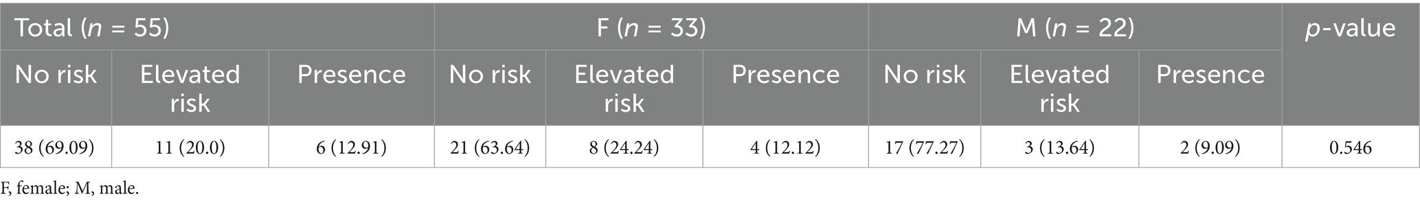 Using the DOS-PL, 10.9% of participants met the threshold for orthorexic behaviors and 20% were at elevated risk with no significant sex differences. Among 236 climbers assessed with the DOS-PL, 12.7% met ON criteria and an additional 25% were at elevated risk (30). Zydek et al. (31) reported ON behaviors in 9.7% of young football players and elevated risk in 18.3%. These findings underscore the need for further research attention, particularly as ON despite not being recognized in ICD-11 or DSM-5 may substantially impair psychological and social functioning (14–17).