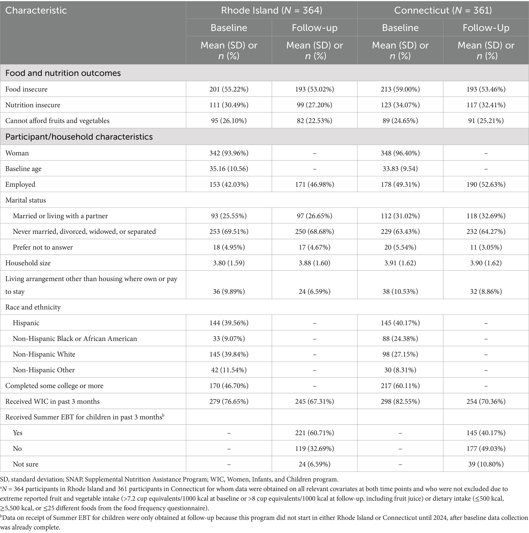 Table 1. Characteristics of analytical sample of SNAP participants in Rhode Island and Connecticuta.