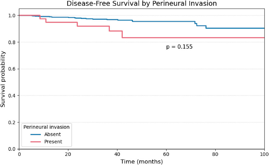 Figure 6. Kaplan-Meier curve for Disease-Free Survival stratified by the presence or absence of Perineural Invasion.