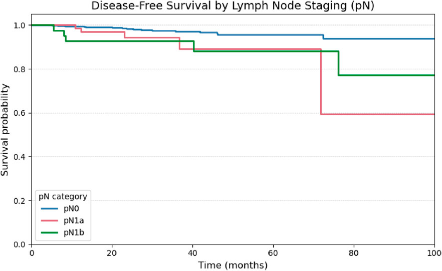 Figure 8. Kaplan-Meier curve for Disease-Free Survival stratified by pathological lymph node staging (pN0, pN1a, pN1b).