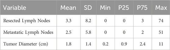 Previous studies have suggested that tumor size greater than 2 cm is associated with reduced disease-free survival when accompanied by additional risk factors, and does not independently influence overall survival or recurrence-free survival (6–8).