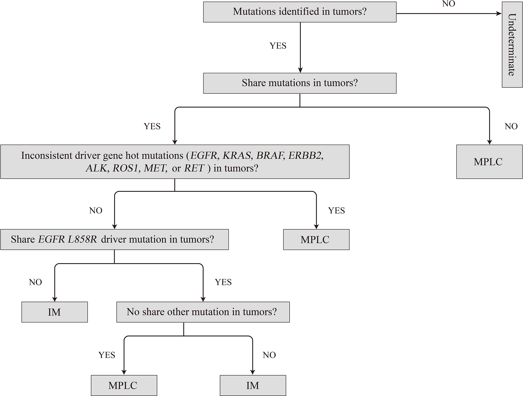 Comprehensive molecular evaluation allows the unambiguous delineation of clonal relationships among tumors. In comparison, the Martini and Melamed criteria have notable limitations in the recognition of IM. Our results support the adoption of a large panel to supplement histology for strongly discriminating NSCLC clonal relationships in clinical practice.