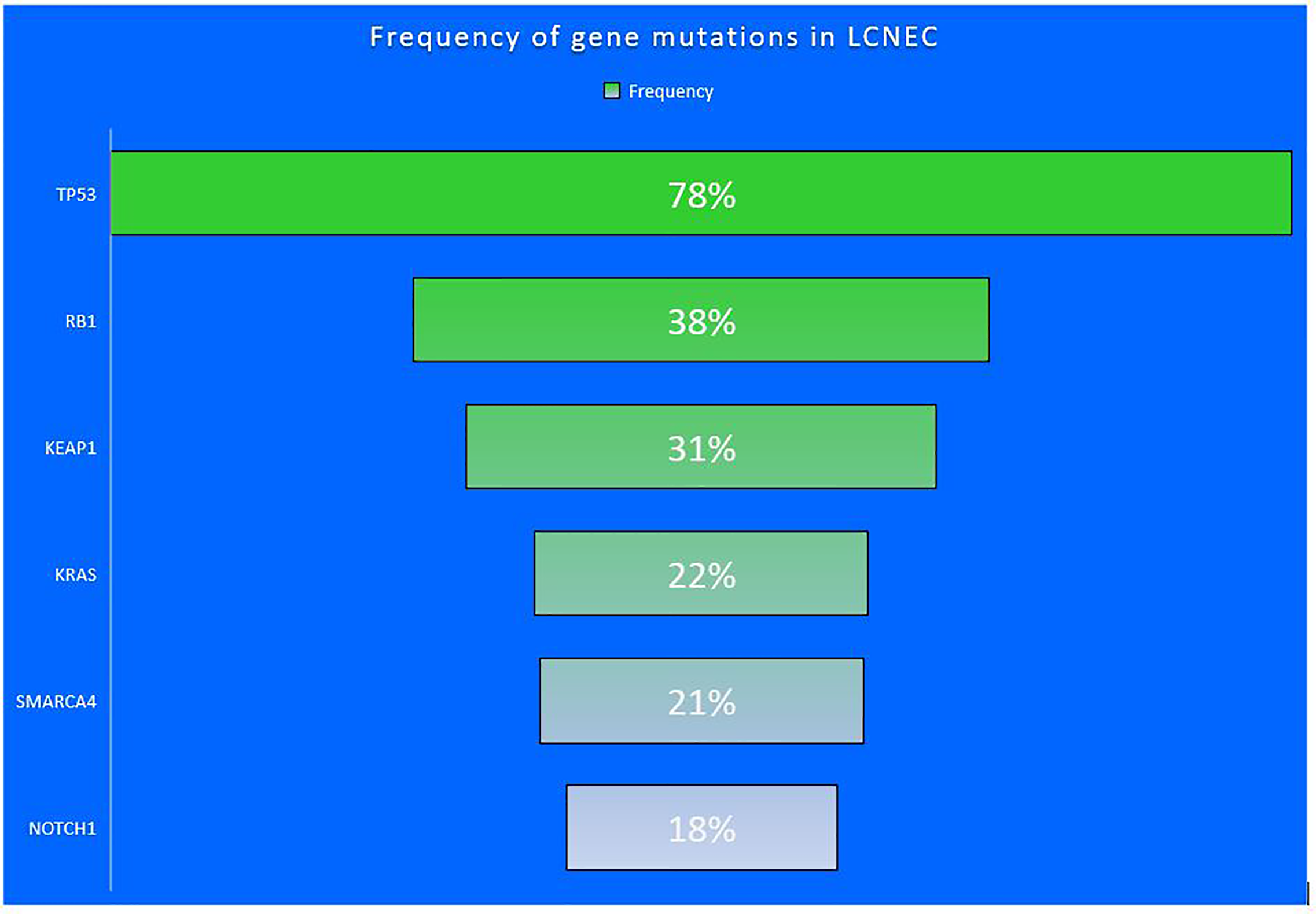 Frequency of gene mutations seen in LCNEC.