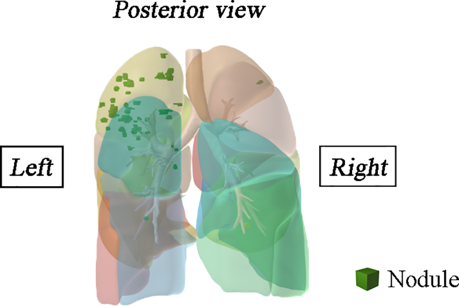Percentage distribution of the pulmonary nodules.