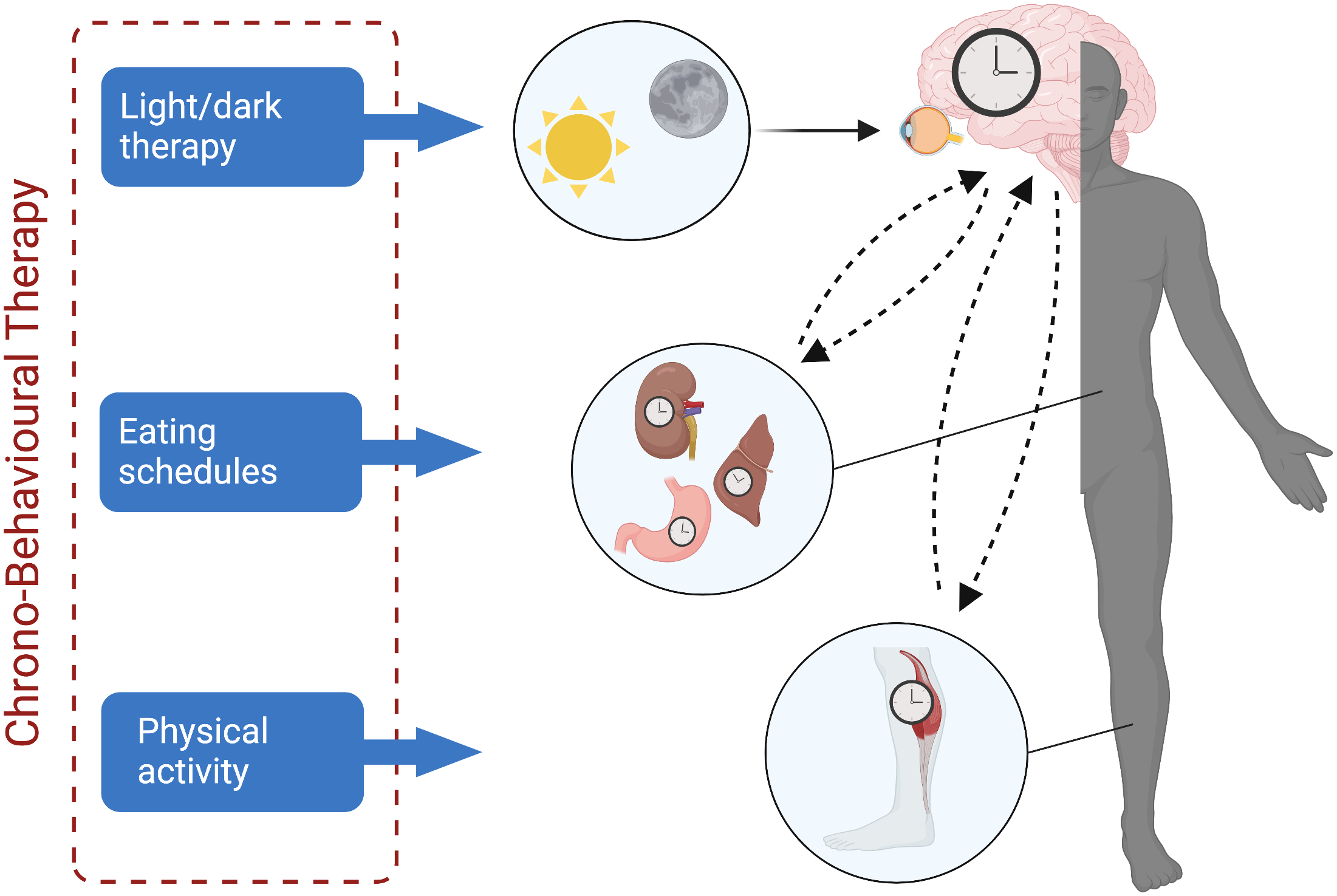 Taken together, a circadian disruption hypothesis of CTRS is not only compatible with other predominant pathophysiological models but adds to them by highlighting the potentially key modulatory role of the circadian system in the manifestation of CTRS (see Figure 1). Furthermore, the appeal of the circadian system as an underlying mechanism lies in its modifiability, as it can be targeted in both pharmacological (e.g., melatonin administration) (71) and non-pharmacological interventions (e.g. light therapy) (72, 73) with the potential to stabilize multiple biobehavioral systems and ultimately lead to symptom reduction and improved quality of life.
