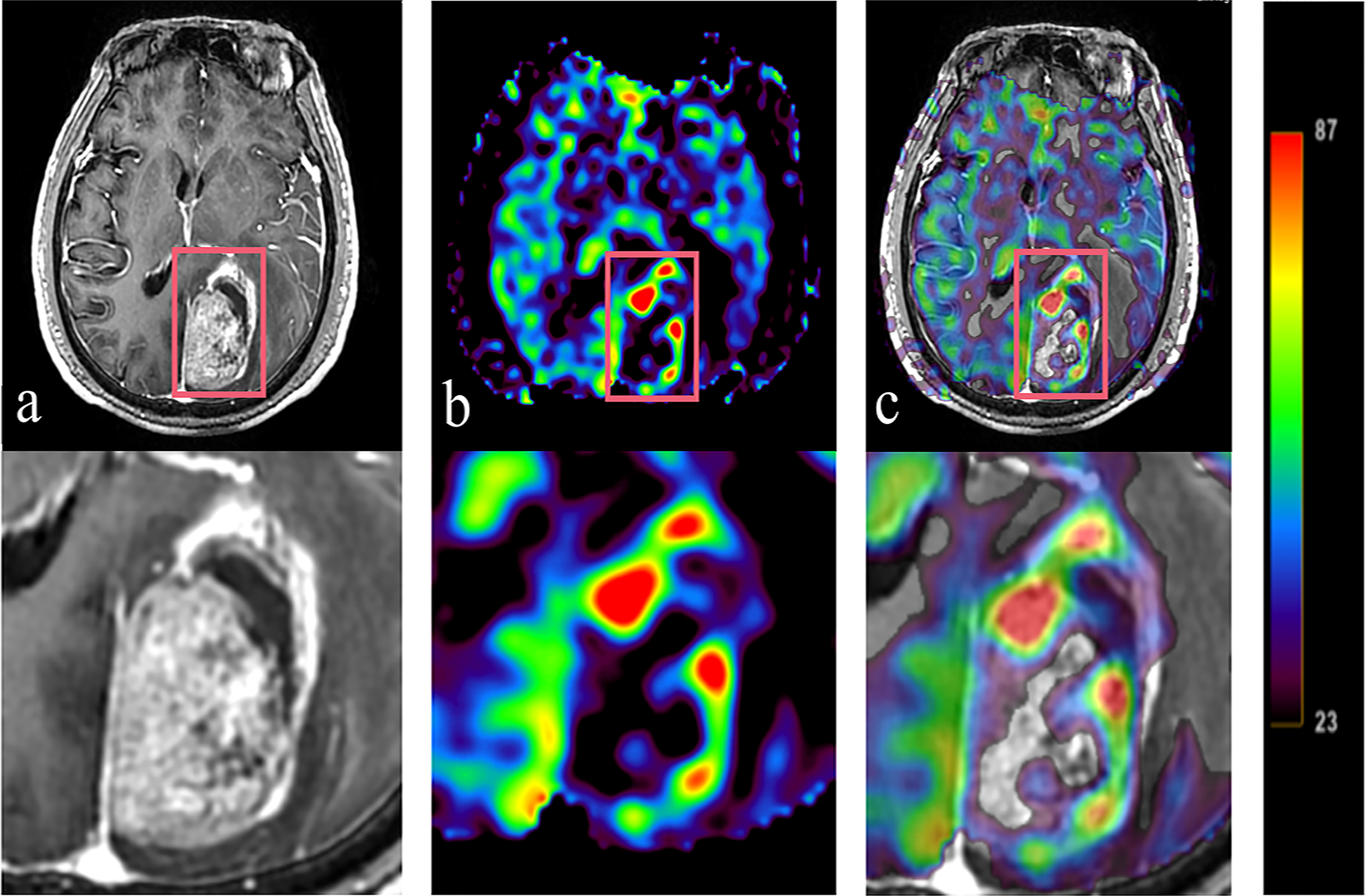 Brain metastases (BMs) are the most common intracranial malignant tumors, and approximately 8-10% of tumor patients will develop BMs during their disease course (1). Approximately 30-50% of BMs patients die of uncontrolled and recurrent intracranial lesions (2). And large-volume BMs are highly heterogeneous due to their long growth cycle and complex blood supply (3, 4). Subvolumes with low cerebral blood flow (CBF) are hypoxic or potentially hypoxic areas, which are associated with radiation resistance (3). Ling et al. has proved that the tumor volume must be considered heterogeneous when assessing function and treatment response (5).