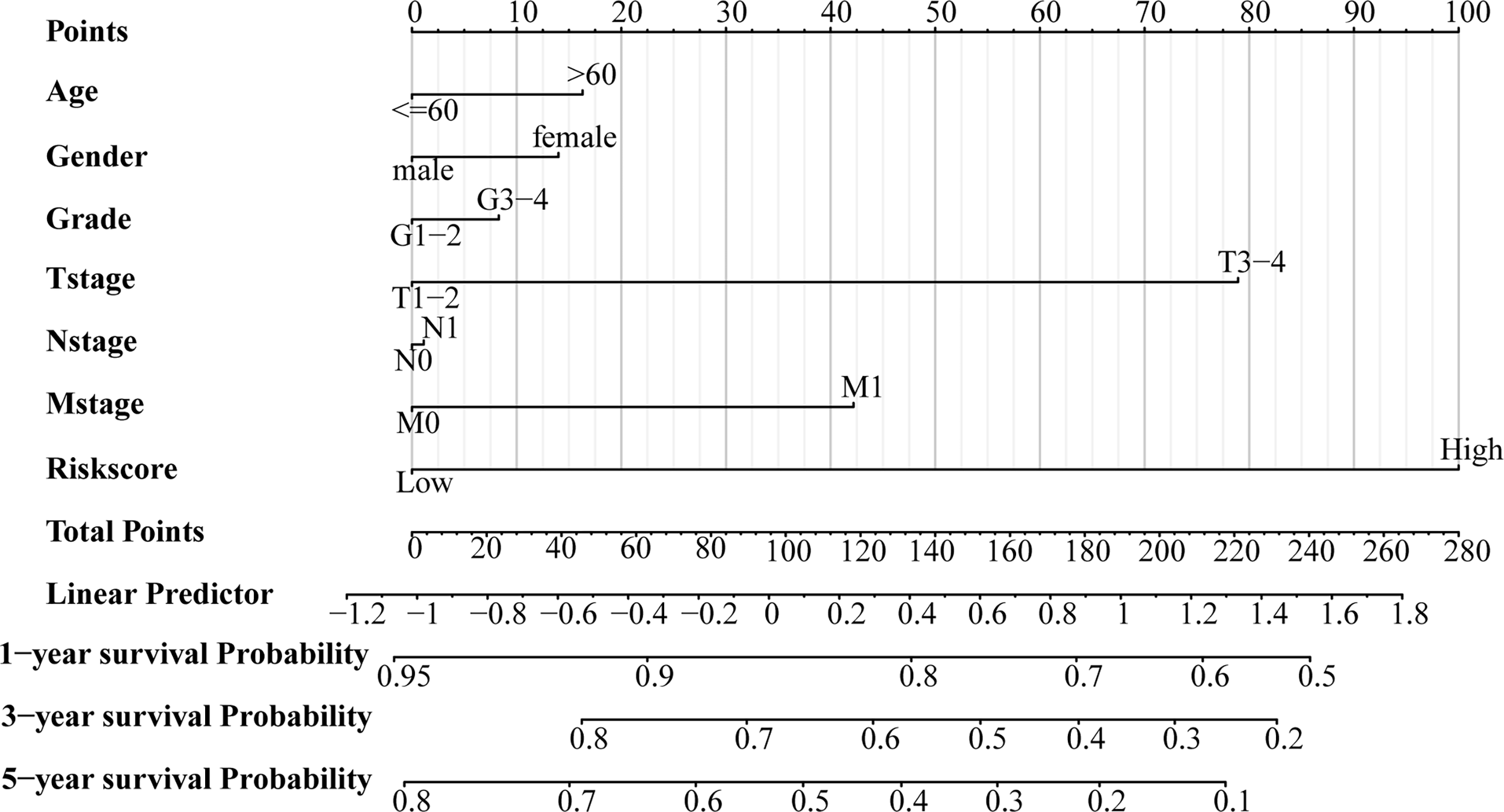 A prognostic nomogram for the overall survival of patients with LIHC.