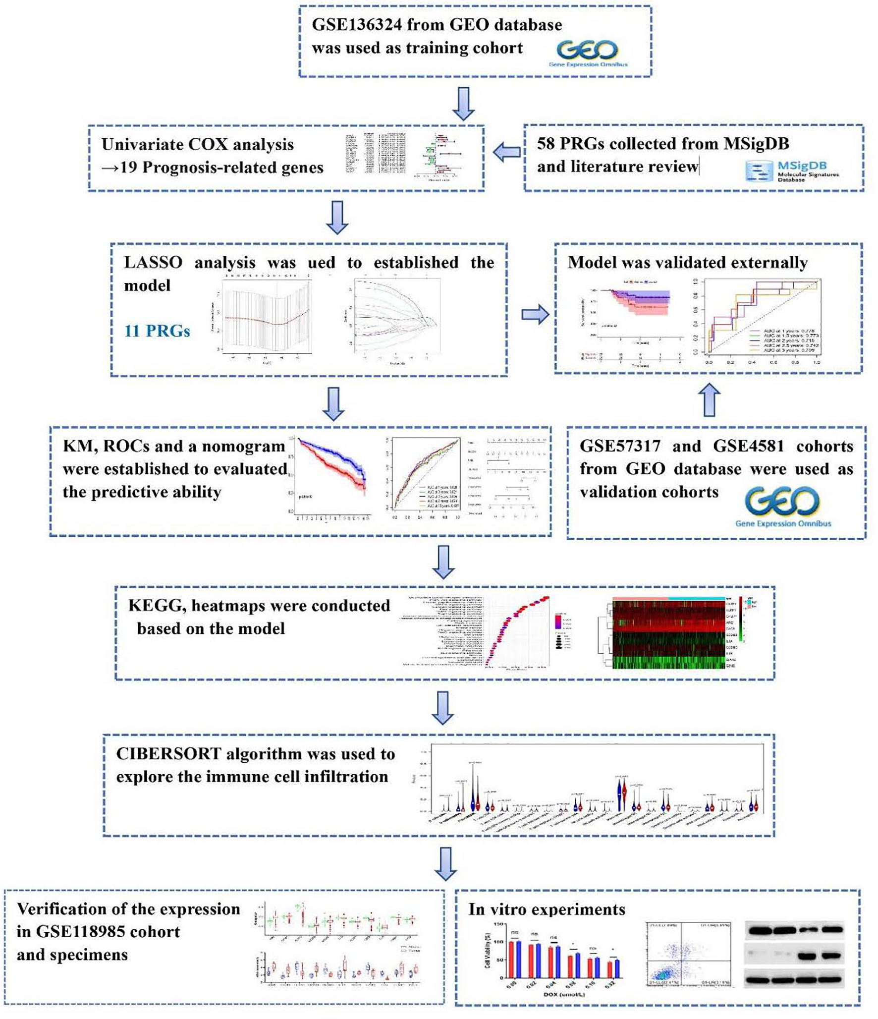 Overall, 986 MM patients with relevant RNA profile and corresponding clinical information from the GEO database were included in our analysis (Table S1). To identify PRGs related to MM prognosis, we specified the GSE136324 cohort(n=866) as the TC, and the GSE57317 (n=55) and GSE4452 (n=65) populations as the VCs. Figure 1 summarizes our research design.