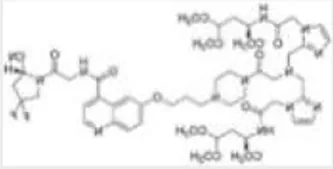 FAPI-34, QCP01[1-(6-((3-((4-((2-((S)-2-cyanopyrrolidin-1-yl)-2-oxoethyl)-carbamoyl)quinolin-6-yl)oxy)propyl)amino)-6-oxohexyl)-2-((E)-2-((E)-3-(2-((E)-3,3-dimethyl-5-(trioxidaneylthio)-1-(4-(trioxidaneylthio)butyl)indolin-2-ylidene)ethylidene)-2-(4-(trioxidaneylthio)phenoxy)cyclohex-1-en-1-yl)vinyl)-3,3-dimethyl-3H-indol-1-ium-5-sulfonate)] and QCP02(2,2′,2″-(10-(1-carboxy-4-((3-((4-((2-((S)-2-cyanopyrrolidin-1-yl)-2-oxoethyl)carbamoyl)quinolin-6-yl)oxy)propyl)amino)-4-oxobutyl)-1,4,7,10-tetraazacyclododecane-1,4,7-triyl)triacetic acid) both demonstrated low nanomolar inhibition (19, 25). FAPI-34, with an IC50 of 6.4–12.7 nM, has been used for SPECT imaging of patients with ovarian and pancreatic cancer metastases, showing good imaging results. When PET imaging is not possible due to equipment, 99mTc-FAPI-34 can be used as the imaging agent for SPECT imaging, which can also be used for diagnosis and efficacy evaluation (19). QCP01 and QCP02 were applied in tumor transplantation models with higher tumor and normal organ uptake than FAPI-02 and FAPI-04, indicating that QCP01 and QCP02 have high affinity for FAP. In addition, 111In-QCP02 SPECT imaging showed higher tumor uptake and lower kidney uptake, which is still in the preclinical study stage (25).