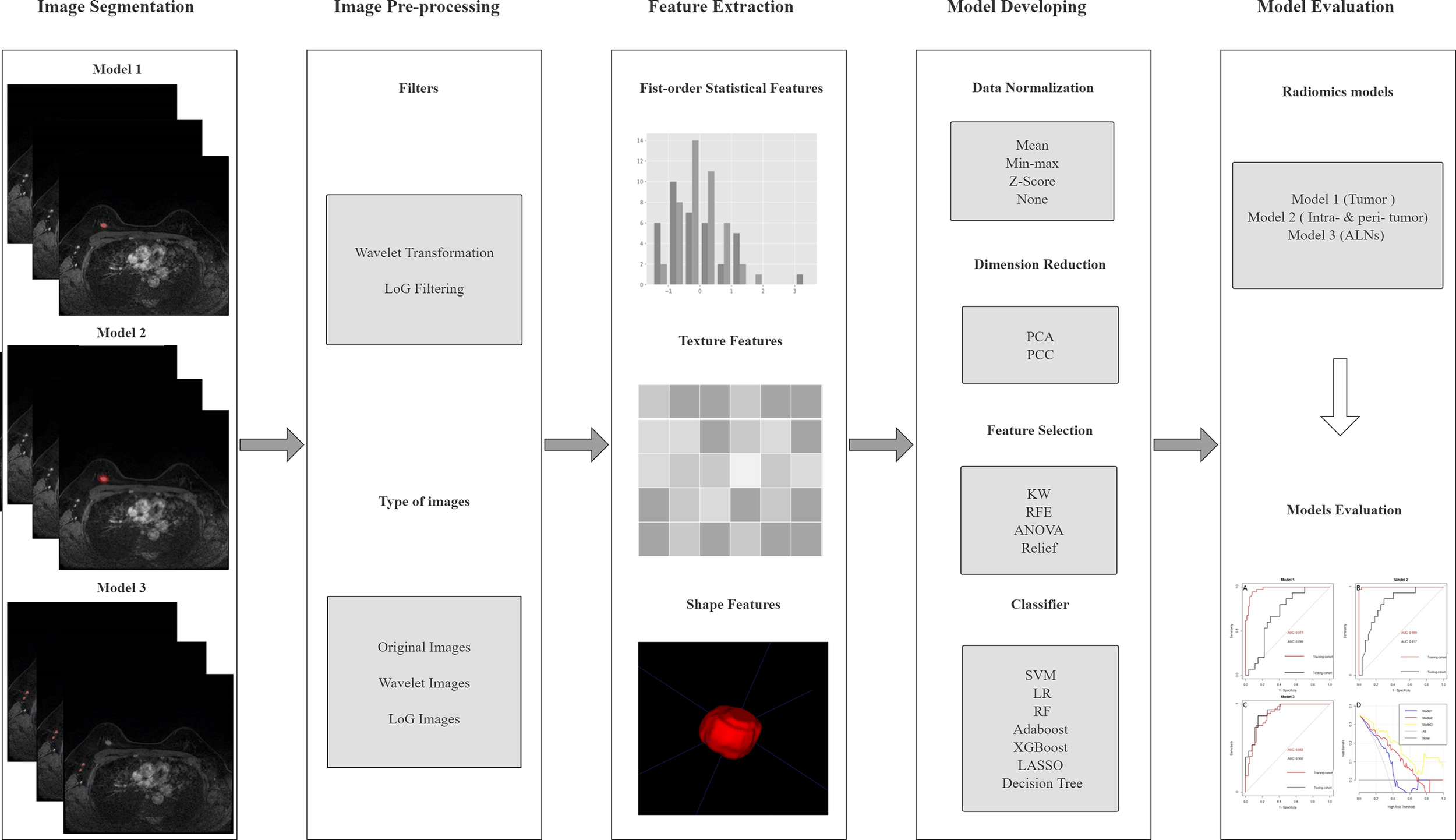 | Radiomics processes | Model 1 (tumor) | Model 2 (intra- and peri-tumor) | Model 3 (ALN) | Model 4 (ALN and tumor) |