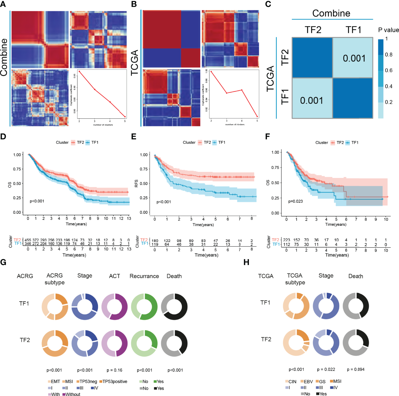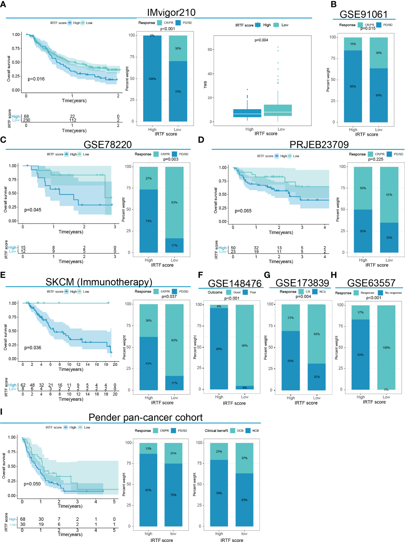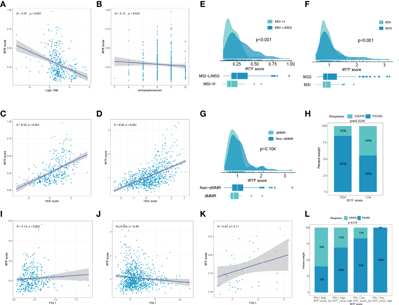 Two distinct IRTF regulation patterns were identified, which demonstrating the distinct characteristics in clinical phenotypes, tumor immune microenvironment (TIME), immunogenicity and prognosis in GC. Subsequently, the IRTF score was established to quantify the IRTF regulation pattern for each GC patient. Analysis of large conventional therapy cohorts showed low IRTF score was associated with a better prognosis. In addition, analysis of multiple immunotherapy cohorts showed low IRTF score was also linked to enhanced response to immunotherapy.