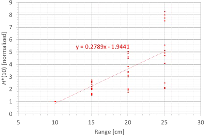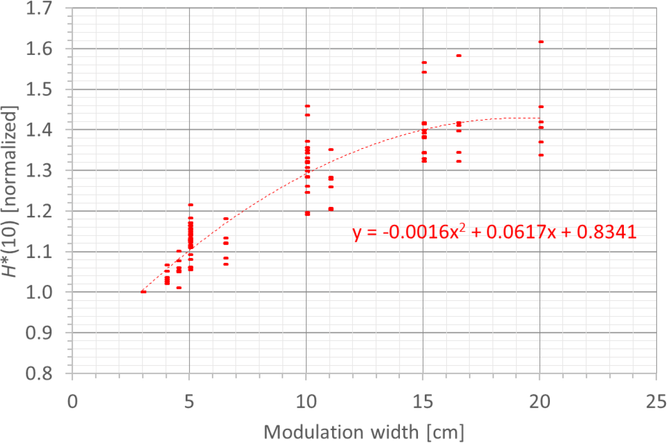 For the H*(10) energy response of the HAWK, only a limited number of data points in the energy range from 0.5 to 60 MeV are available from (10). These are also shown in Figure 2. It can be seen that the response is very close to unity in this energy range. Similar to the Sievert and other TEPCs, also for the HAWK, an under-response for energies below 0.5 MeV can be expected. For high-energy neutrons, the response is expected to be close to unity as well.