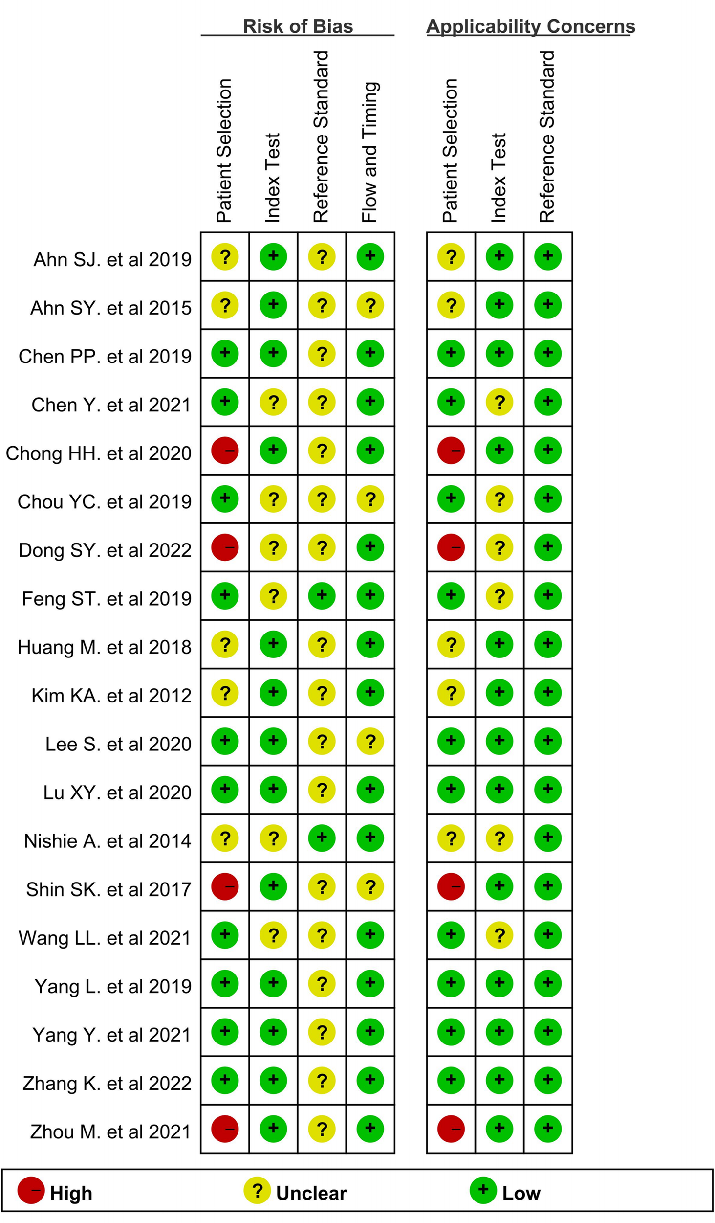 Methodological quality summary of all included studies by using Quality Assessment of Diagnostic Accuracy Studies.