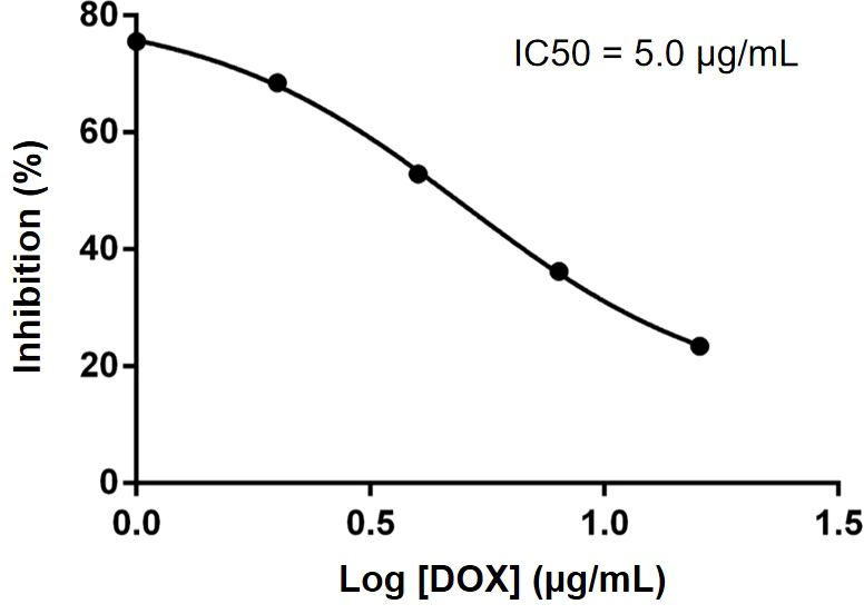 IC50 of DOX was determined to be 5.0 µg/ml in HSC-3 cells. Data were obtained from n = 5 measurements.
