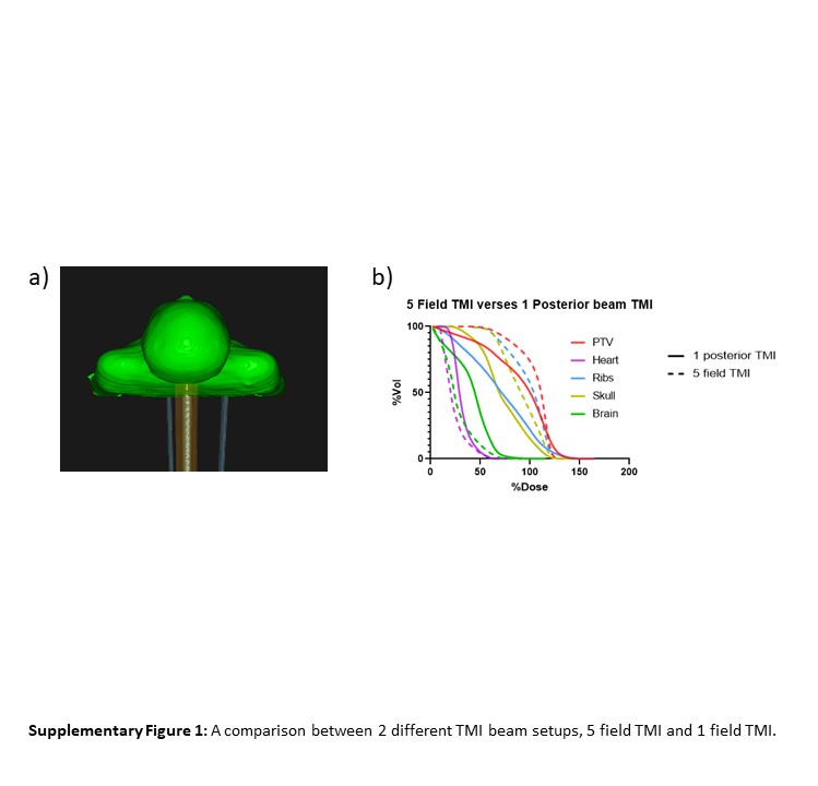 Statistical analysis was performed using GraphPad Prism v 7.04 (GraphPad Software Inc., La Jolla, CA, USA). The outliers were identified using a robust non-linear regression method, ROUT (Q = 1%, ‘Q’ is the maximum desired false discovery rate), which were assessed for the different targets and OARs used in the TMI treatment planning. Multiple group comparisons were performed with a one-way ANOVA test, correcting for multiple comparisons. Group comparisons were performed with an unpaired two-tailed Student’s test. A p-value of ≤.05 was considered statistically significant.