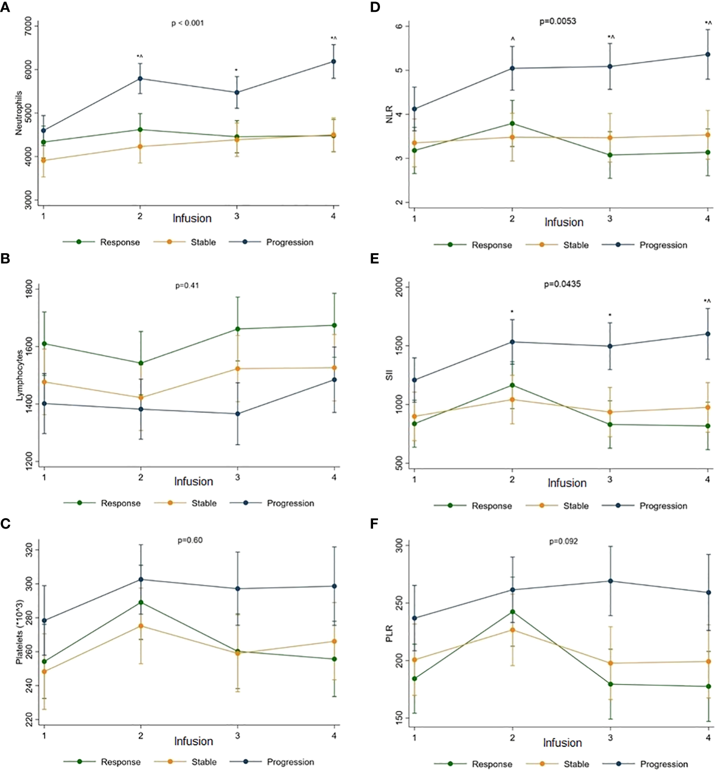 Li M Spakowicz D Burkart J Patel S Husain M He K et al . Change in neutrophil to lymphocyte ratio during immunotherapy treatment is a non-linear predictor of patient outcomes in advanced cancers. J Cancer Res Clin Oncol (2019) 145(10):2541–6. doi: 10.1007/s00432-019-02982-4