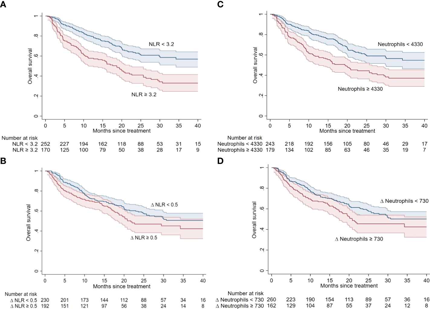 Early neutrophils and NLR Δ may represent new dynamic prognostic factors with clinical utility for on-treatment decisions.