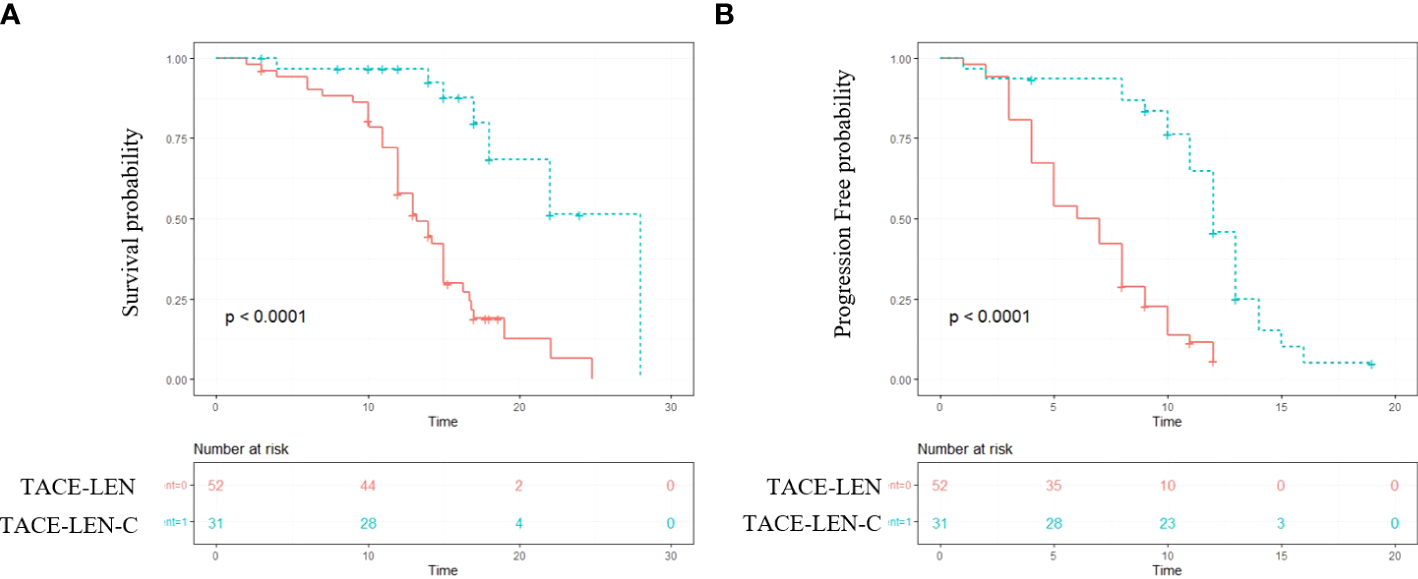 OS, overall survival; PFS, progression-free survival; TACE-LEN, transcatheter arterial chemoembolization with Lenvatinib; TACE-LEN-C, transcatheter arterial chemoembolization with Lenvatinib plus camrelizumab.