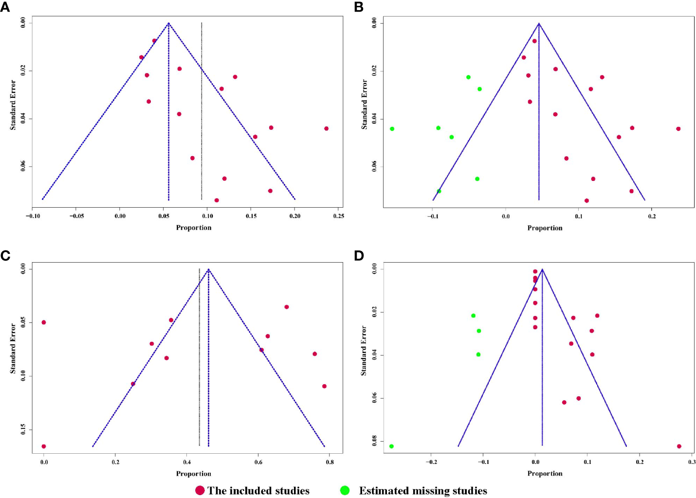 All statistical analyses were performed and visualized using the software R version 4.1.2 (The R Foundation for Statistical Computing, MO, USA). Single-arm meta-analysis was performed to evaluate functional outcomes. The results are expressed as the pooled rate and 95% confidence interval (CI). The effect size of all pooled results was represented by 95% CI with an upper limit and a lower limit. The Cochrane Q chi-square test and I2 statistic were used to examine the heterogeneity across studies. The fixed-effects model was used for the pooled results with low heterogeneity (I2 ≤ 50%); otherwise, the random-effects model was used for analysis. The sensitivity analysis was performed by excluding each study one by one for the pooled results with high heterogeneity. Moreover, funnel plot and Egger’s test were used to detect the potential publication bias of included studies. Trim-and-fill analysis was performed if there was a potential publication bias. The value of p <.05 was considered statistically significant.