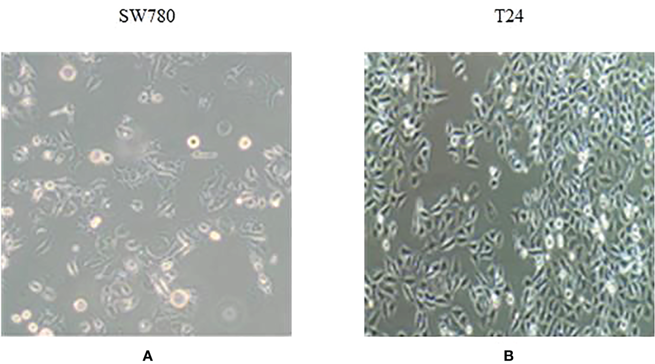 Bladder cancer cell line organoid model. (A) SW780 bladder cancer cell line. (B) T24 bladder cancer cell line.