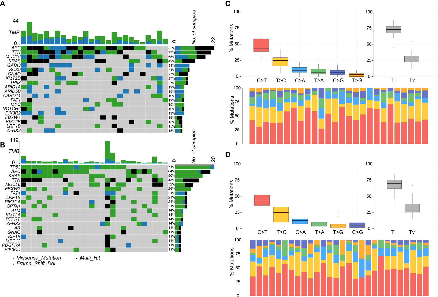 2.2 Somatic mutations in the two groups showed similarity in most frequently mutated genes and transitions/transversions ratio