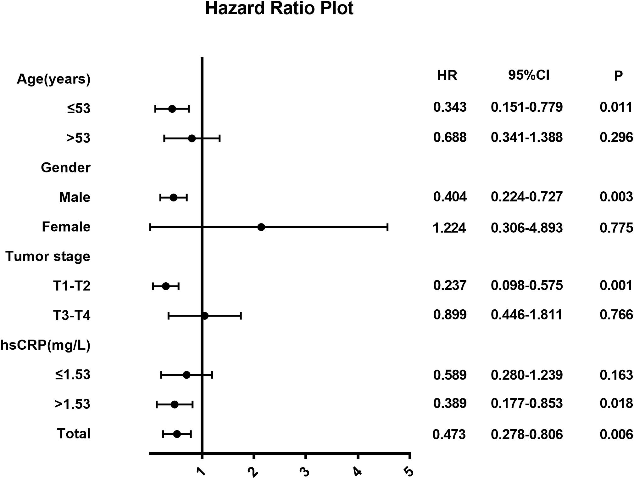 Hazard ratios for death in NPC patients.