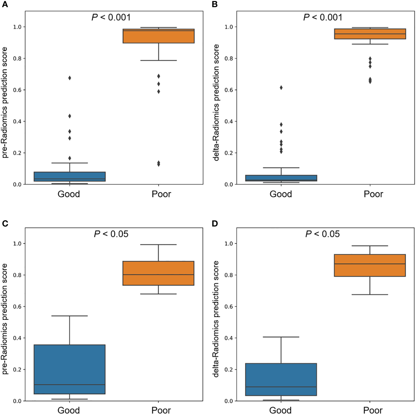 In the study, two radiomics types were defined: pre-Radiomics and delta-Radiomics. Pre-Radiomics analysis was implemented only using the pre-Radiomics features from pre-therapy MRI. Delta-Radiomics analysis was implemented using the delta-Radiomics features based on changes in radiomic features before and after NCRT, which were post-therapy radiomics features minus the pre-therapy radiomics features. All the imaging features were standardized for the subsequent machine-learning processing.