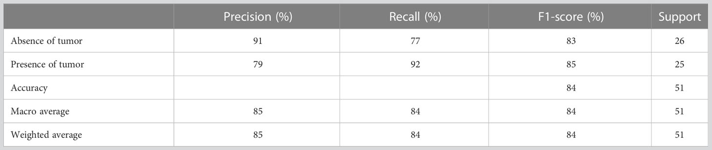 Table 4 Classification report for the model performance after hyperparameter tuning.