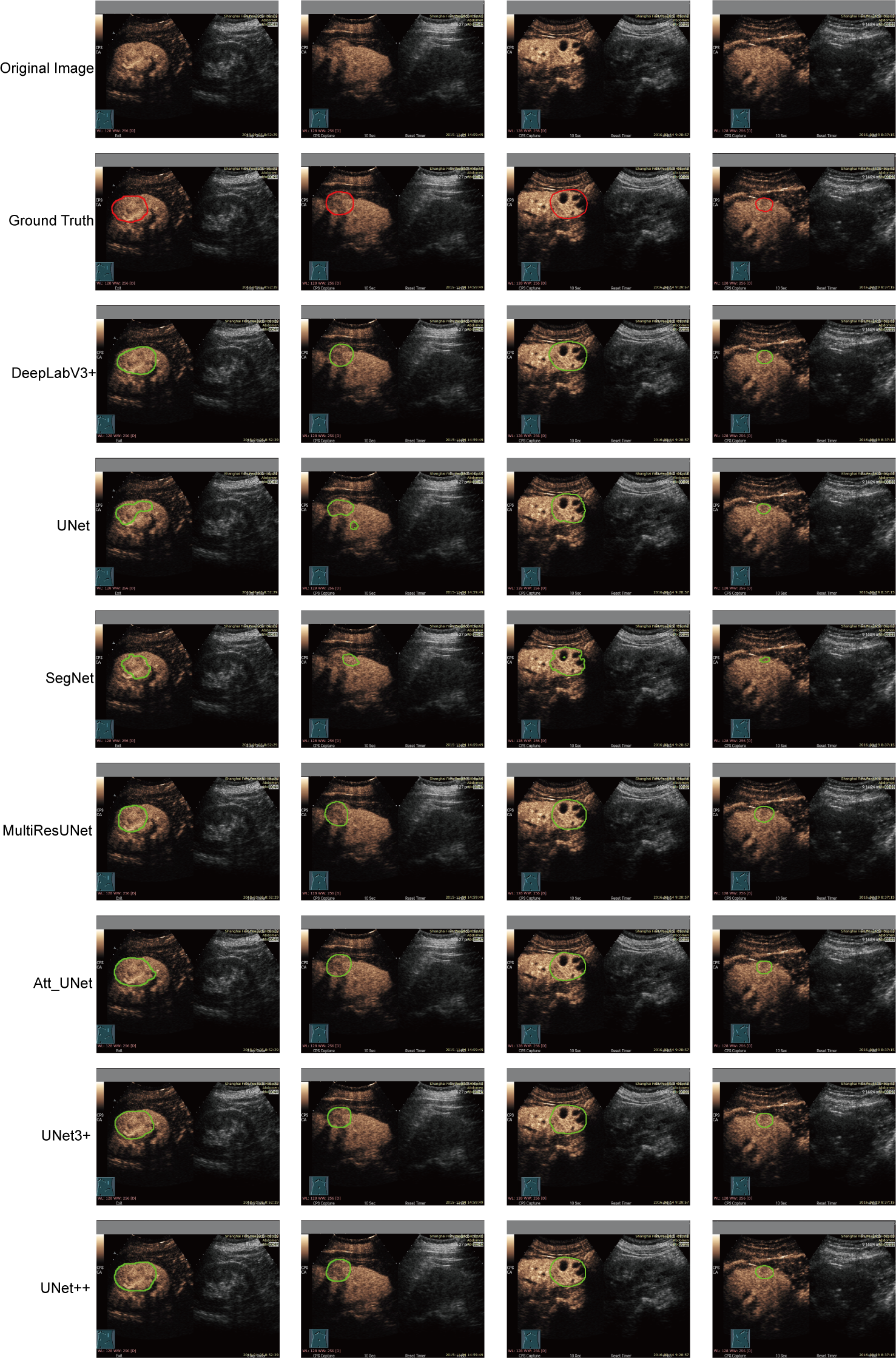 Performance of different CNN-based models on automatic segmentation of CEUS images