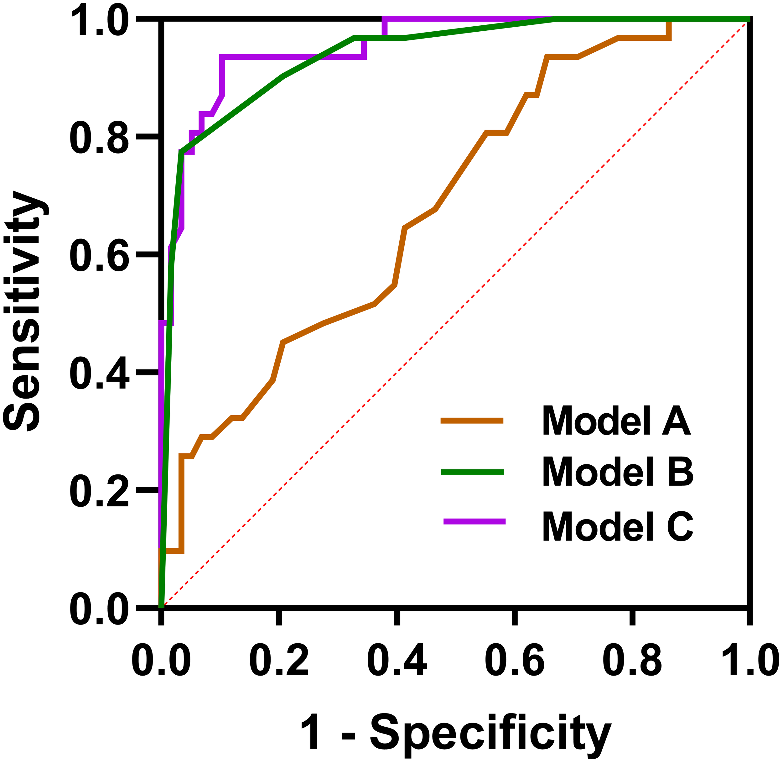 Statistical analyses were performed using the software package SPSS version 22.0 for Windows (IBM, Chicago, IL, USA). The categorical variables were presented as numbers and percentages and compared by Chi-square test, while the continuous variables were presented as mean ± standard deviation and compared by Student’s t-test. A two-tailed p<0.05 was considered statistically significant. Using logistic regression analysis to assess the effectiveness of statistically significant variables in distinguishing between C-MALT and P-LADC, different predictive models were constructed. Construct Receiver operating characteristic (ROC) curve, and the area under curve (AUC), positive predictive value (PPV), negative predictive value (NPV), specificity, sensitivity, and accuracy were used to measure their diagnostic performance.