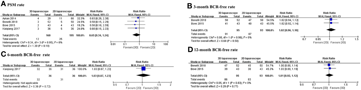 We systematically searched the PubMed, Embase, and Cochrane Library databases for studies that compared perioperative, functional, or oncologic outcomes of both 3D and 2D LRP. The Newcastle-Ottawa Scale (NOS) tool and Jadad scale were used to assess the risk of bias in the included studies. Review Manager 5.3 was used for the meta-analysis.