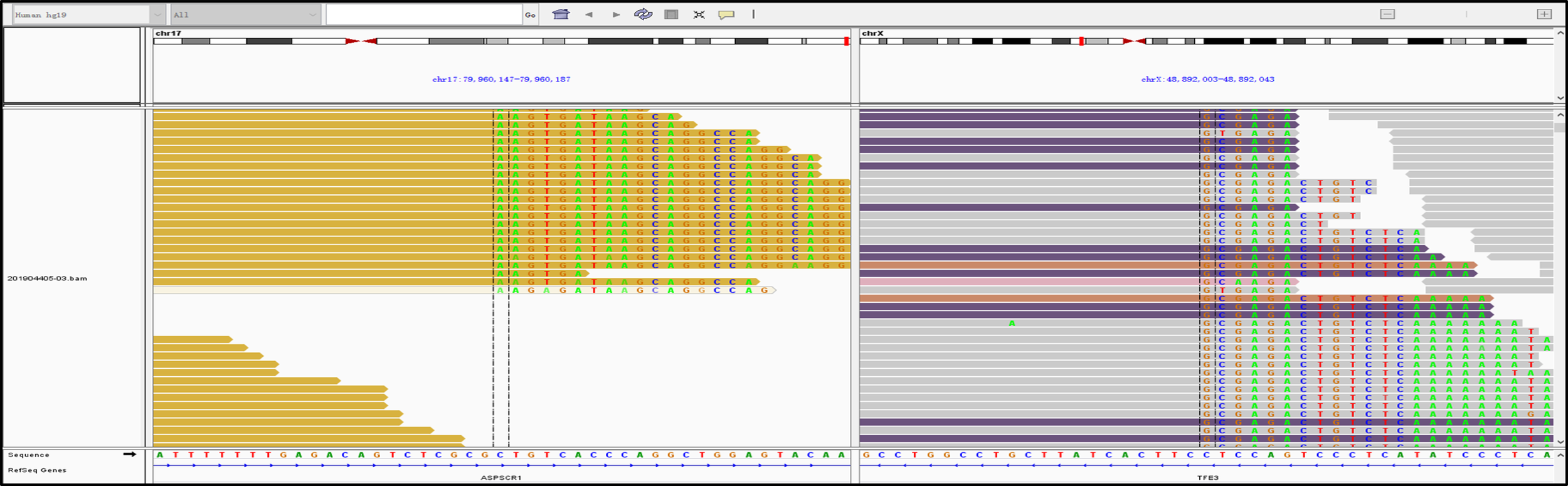 A fusion of TFE3 and ASPSCR1 was detected in the tumor.