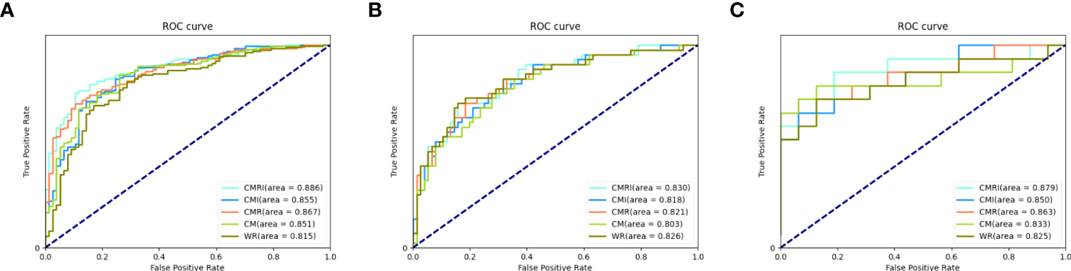 All statistical analyses were performed using SPSS 23.0 software for Windows (SPSS, Chicago, USA) and Python software (version 3.6.8, Python Software Foundation, USA). The chi-square or Fisher’s exact test was used for qualitative variables, and the Mann-Whitney test was used for quantitative variables. The AUC was used to evaluate the performance of prediction models, and the DeLong test was used to compare the differences in AUC between models pairwise. P<0.05 was considered statistically significant.