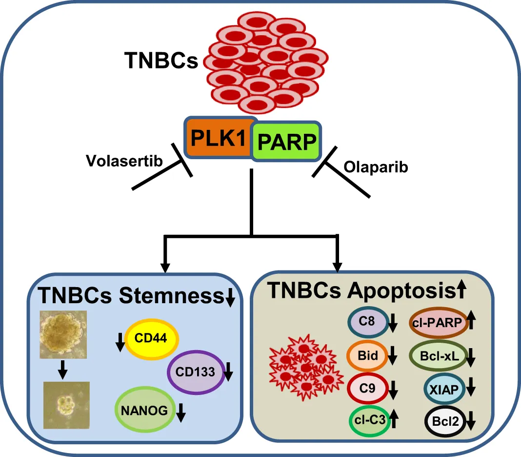 The PARP inhibitor, olaparib and PLK1 inhibitor, volasertib were obtaind from Selleck Chemicals (Houston, TX, USA). Antibodies against PLK1 (4513), Bcl-xl (2762), Bcl-2 (2876), cleaved caspase-3 (9664), PARP (9542), CD133 (64326), CD44 (3570), NANOG (4903) and GAPDH (5174) were procured from Cell Signaling Technology (Danvers, MA). Antibodies against Caspase-9 (sc-17784) and caspase-3 (sc-56053) were obtained from Santa Cruz Biotechnology, Inc. (Santa Cruz, CA). Caspase-8 (51-8084) and XIAP (610763) antibodies were procured from BD Pharmingen (San Diego, CA, USA). Annexin V was obtained from Thermo Fischer Scientific (Waltham, MA).