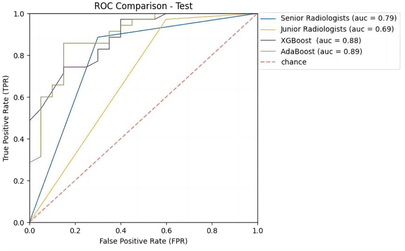 | XGBoost AdaBoost Senior Radiologists |