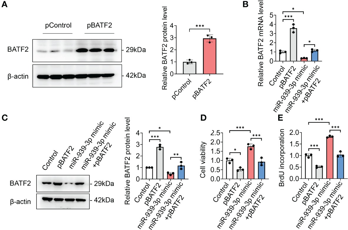 3.4 miR-939-3p suppresses BATF2 expression via directly binding to its 3’ UTR