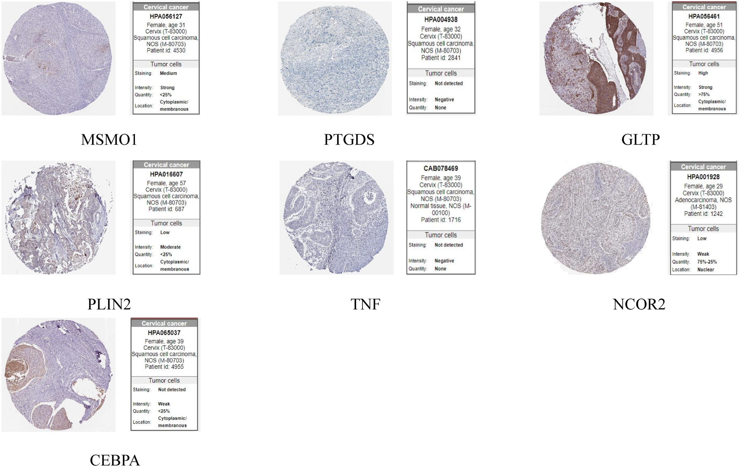 We downloaded RNA-seq data (FPKM format) for integration of gene expression data from the UCSC database (https://genome.ucsc.edu/) for integration of gene expression data from the TCGA (https://portal.gdc.cancer.gov/) and GTEx (https://www.gtexportal.org/) databases. Related clinical data of CC patients downloaded from the TCGA database. The GO database (http://geneontology.org/) and KEGG database (https://www.kegg.jp/) were used to characterize the functions of the genes. We validated the protein expression of 9 genes using the HPA database (https://www.proteinatlas.org/).