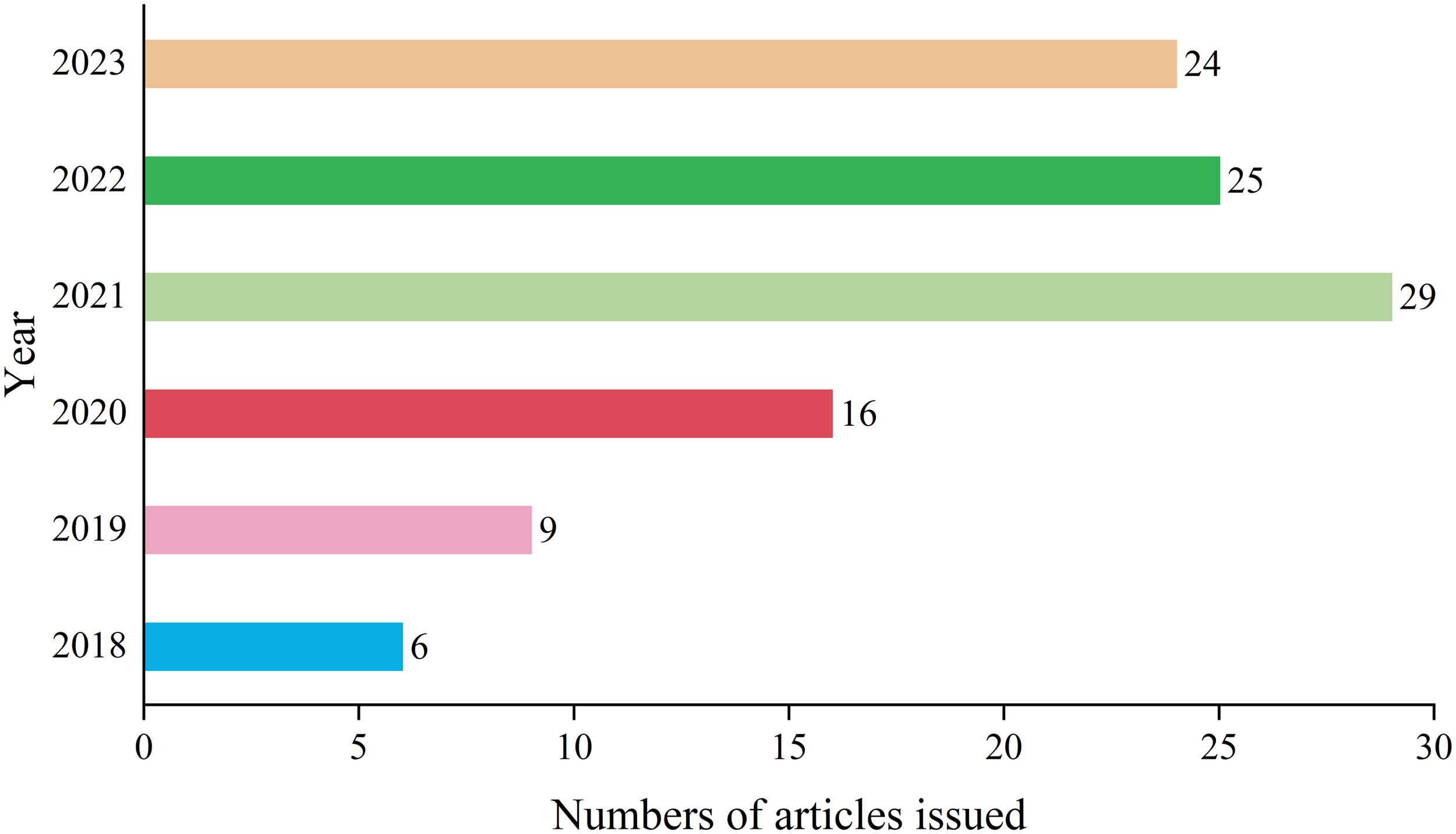The annual distribution, journals, authors, countries, institutions, and keywords of articles published between 2018 and 2023 were visualized and analyzed using CiteSpace and other bibliometric tools.
