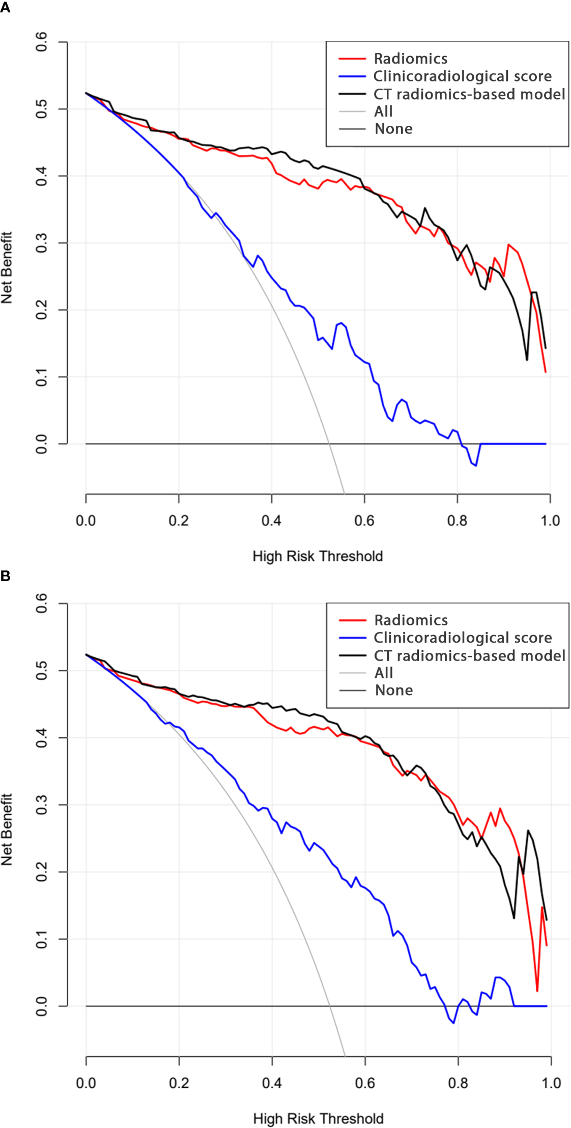 There are some limitations to the present study. For one, as a retrospective study, there is a high risk of selective bias. Secondly, this was a single-center study, therefore, prospective multi-center validation is required. Thirdly, some patient data at baseline was not balanced between the training and testing cohorts, potentially contributing to a greater risk of bias. However, both cohorts exhibited similarly high AUC values exceeding 0.9, suggesting a high degree of stability for the predictive model. Finally, because a radiomics approach was employed in this study, the reproducibility of this analytical strategy and its potential for standardization are limited, constraining the potential clinical application of this model.