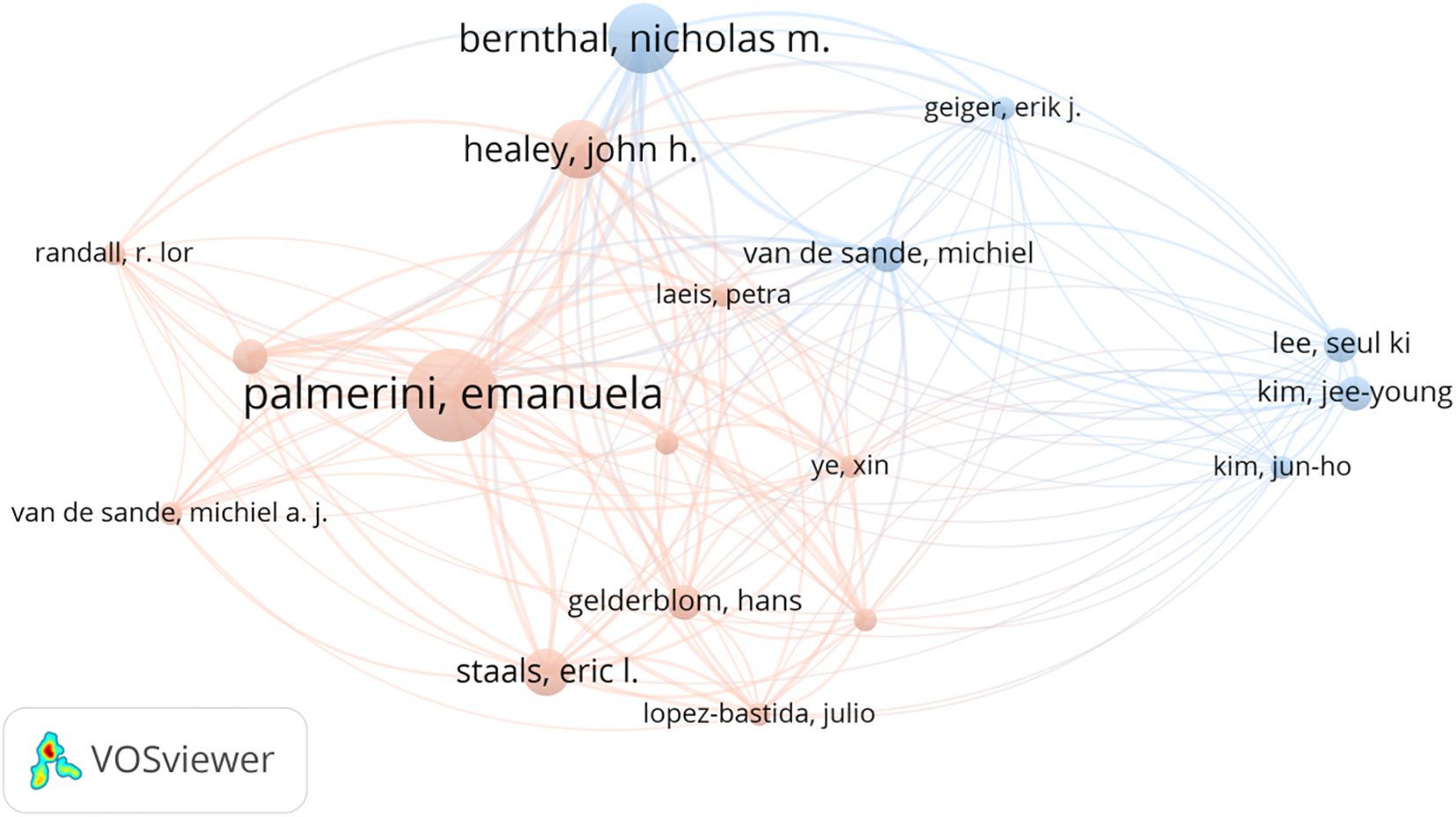 Figure 6. The authors collaboration network of the most cited articles on TGCT recurrence. From: VOSviewer.