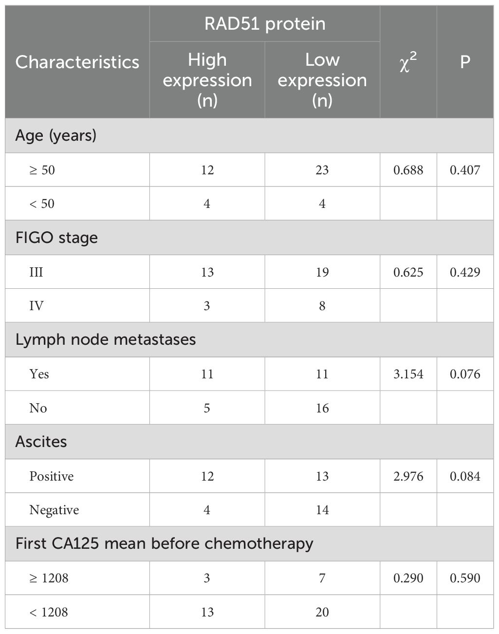 Table 2. Correlation between RAD51 protein expression and clinicopathological characteristics in patients.