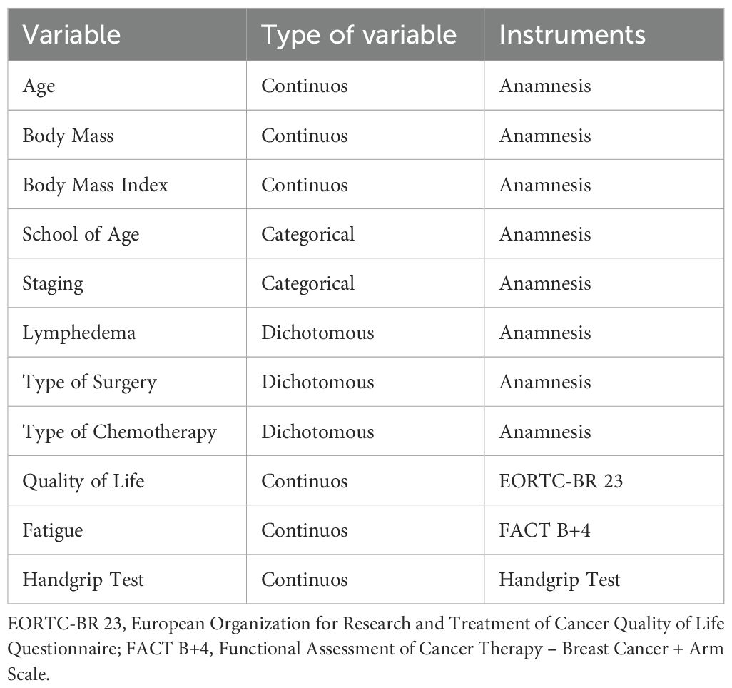 We measure quality of life, fatigue and handgrip strength. In addition, specific questions were asked about the general state of health, addressing conditions such as hypertension, diabetes, cardiovascular disease and lymphedema. Questions about sociodemographic variables such as marital status, socioeconomic status, and ethnicity were also included. In addition, anthropometric data, such as height (in meters) and weight (in kilograms) of the volunteers, were recorded to calculate the body mass index (weight/height*height). Data on physical activity was also collected.