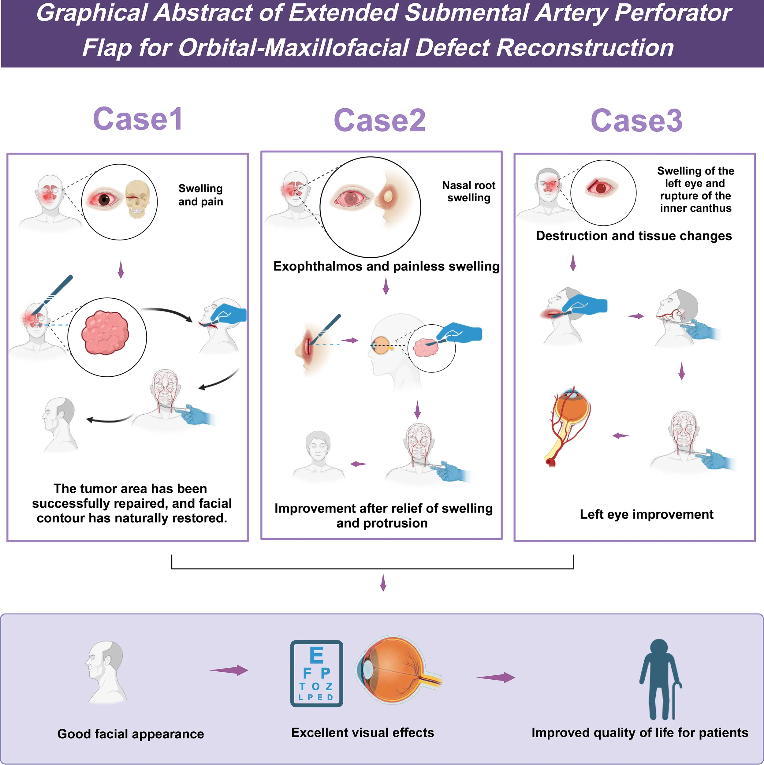 The extended pedicled SMAPF is a reliable and effective option for one-stage reconstruction of complex orbital and maxillofacial defects following sinonasal malignancy resection. It provides stable vascular support, and functional and aesthetic outcomes meet clinical expectations.